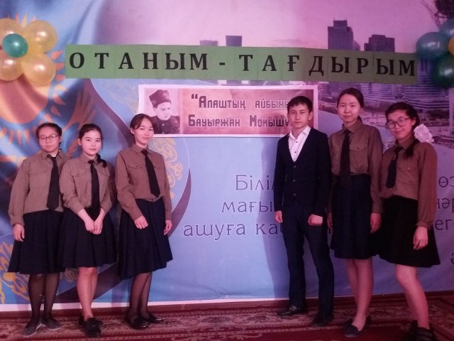 «Отаным тағдырым» тақырыбында АӘД пәнінің мұғалімі А.К.Булатовтың ұйымдастыруымен «Алаштың айбыны Бауыржан Момышұлы» бейнесін бүгінгі жас ұрпаққа үлгі ету мақсатында төмендегі жоспар бойынша 10 а,б, 10 д,е орыс сыныптарының қатысуымен конференция өткізілді. Өткізу өзін өзі басқару тәртібімен жоғары деңгейде өтті.